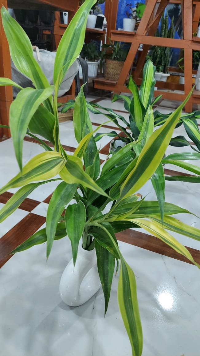 It is popular in homes and offices for its elegant appearance and association with good luck and positive energy. This plant grows well in water or well-draining soil and prefers bright, indirect light for healthy variegation.